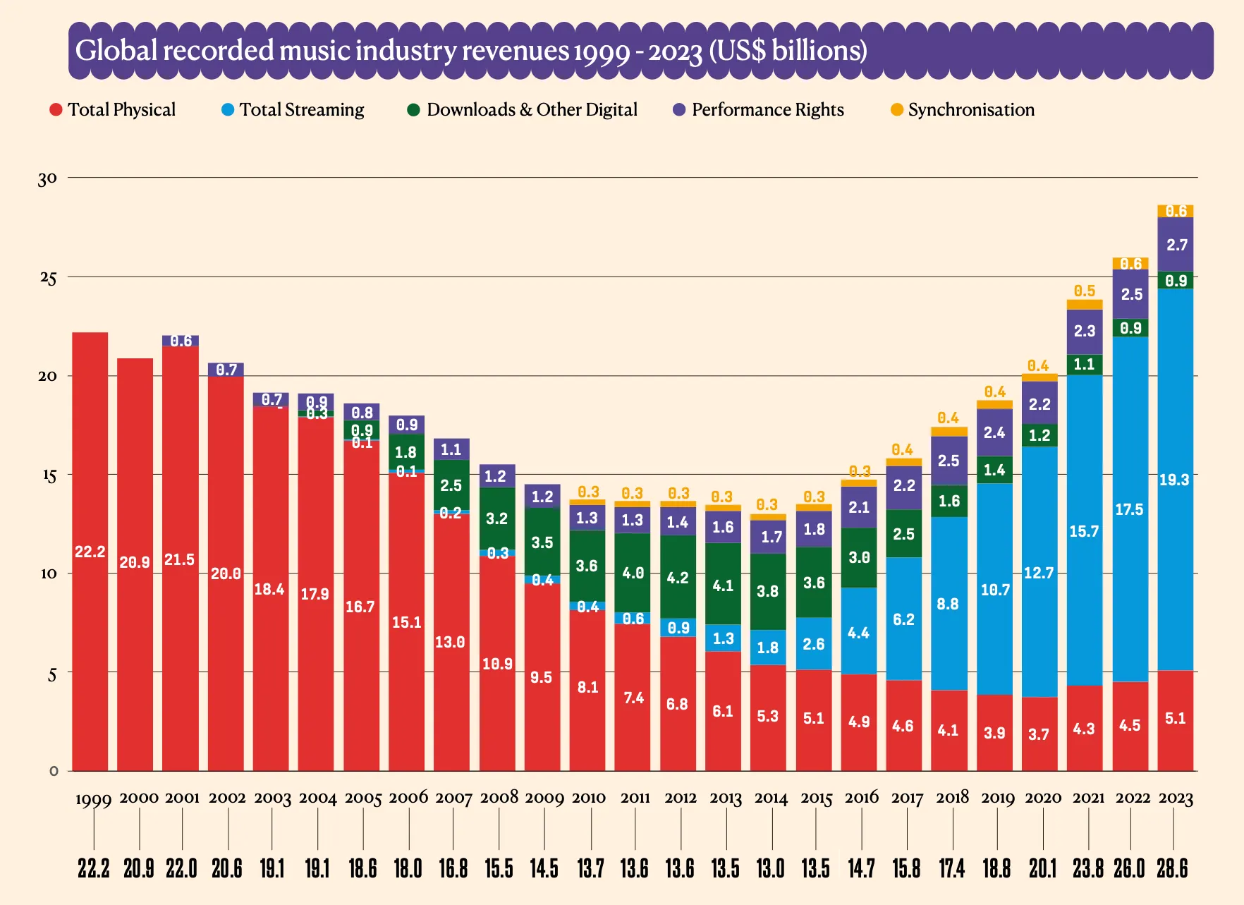 국제음반산업협회(IFPI) 리포트에 따른 전 세계 디지털 음원 시장은 매년 5% 이상 꾸준히 성장하고 있다고 발표했어요.